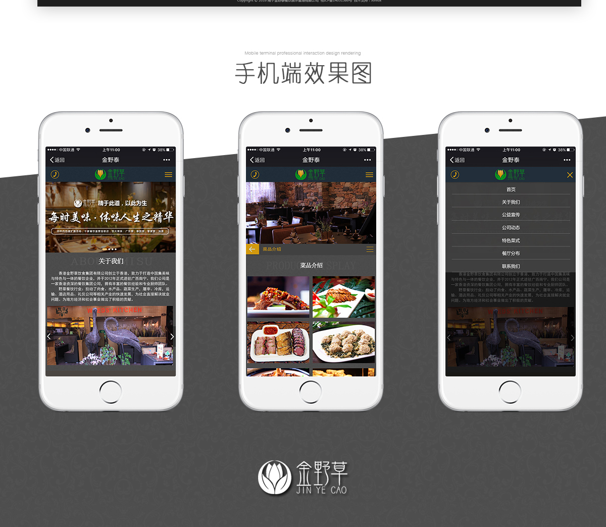 香港金野草餐饮集团pc+wap2018年度作品