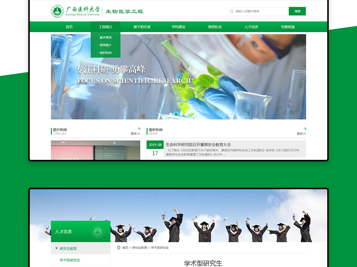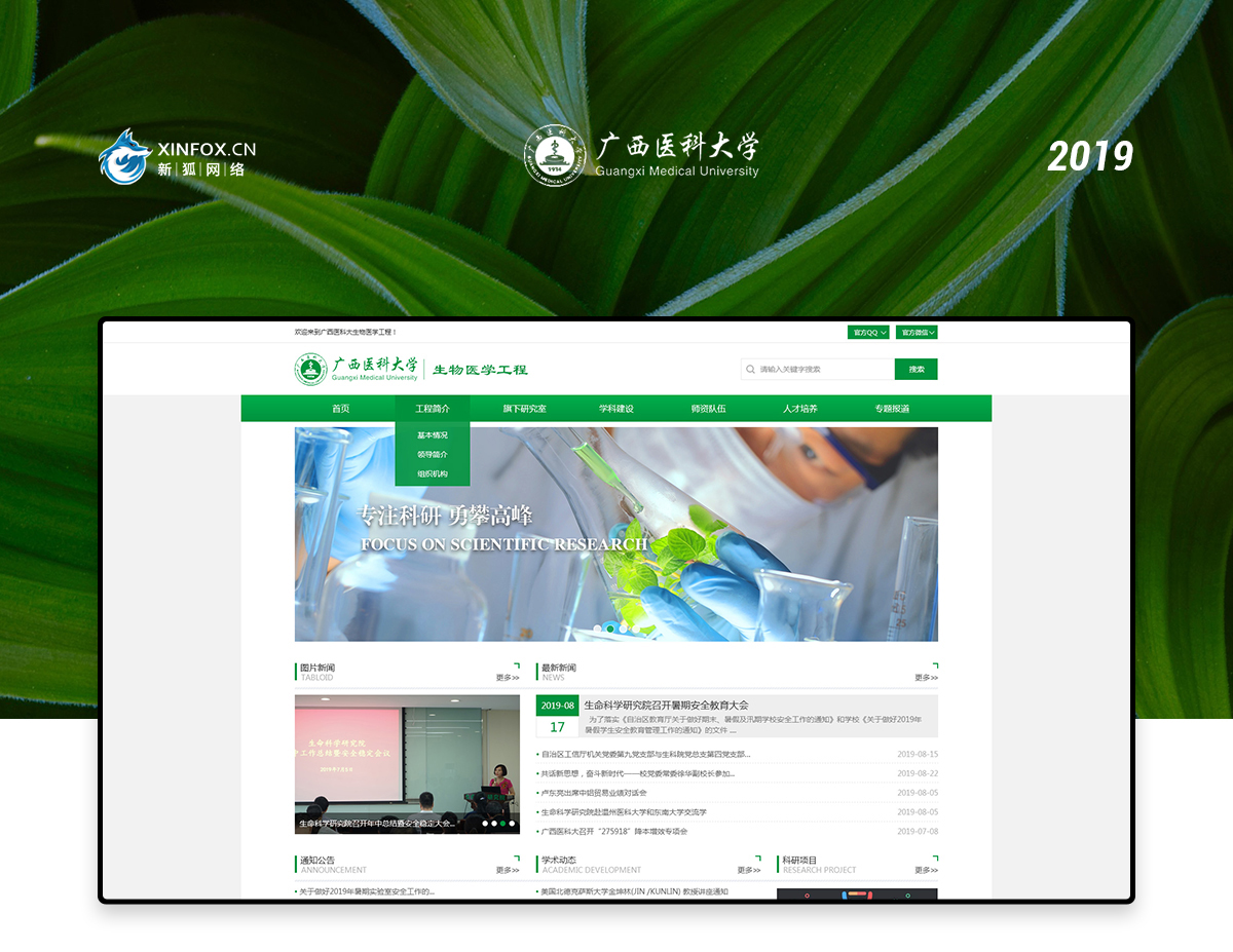 广西医科大学生物医学工程企业网站建设2019年度作品